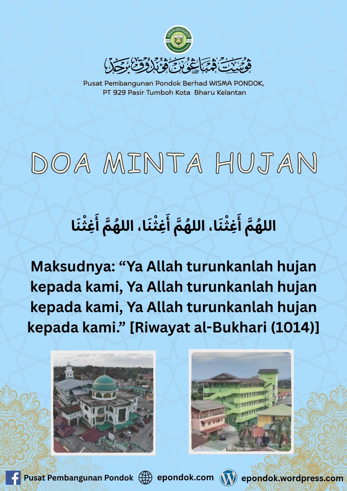 Amalan Pilihan Doa Minta Hujan bakriah April 11, 2026 (Last updated: April 11, 2026) 0 comments About the Author bakriah Administrator Visit Website View All Posts Post navigation Previous: Bilik Tumpangan Al-Bakriah InnNext: Sumbangan untuk Aircond Masjid Leave a Reply Cancel replyYour email address will not be published. Required fields are marked *Comment * Name * Email * Website Save my name, email, and website in this browser for the next time I comment.